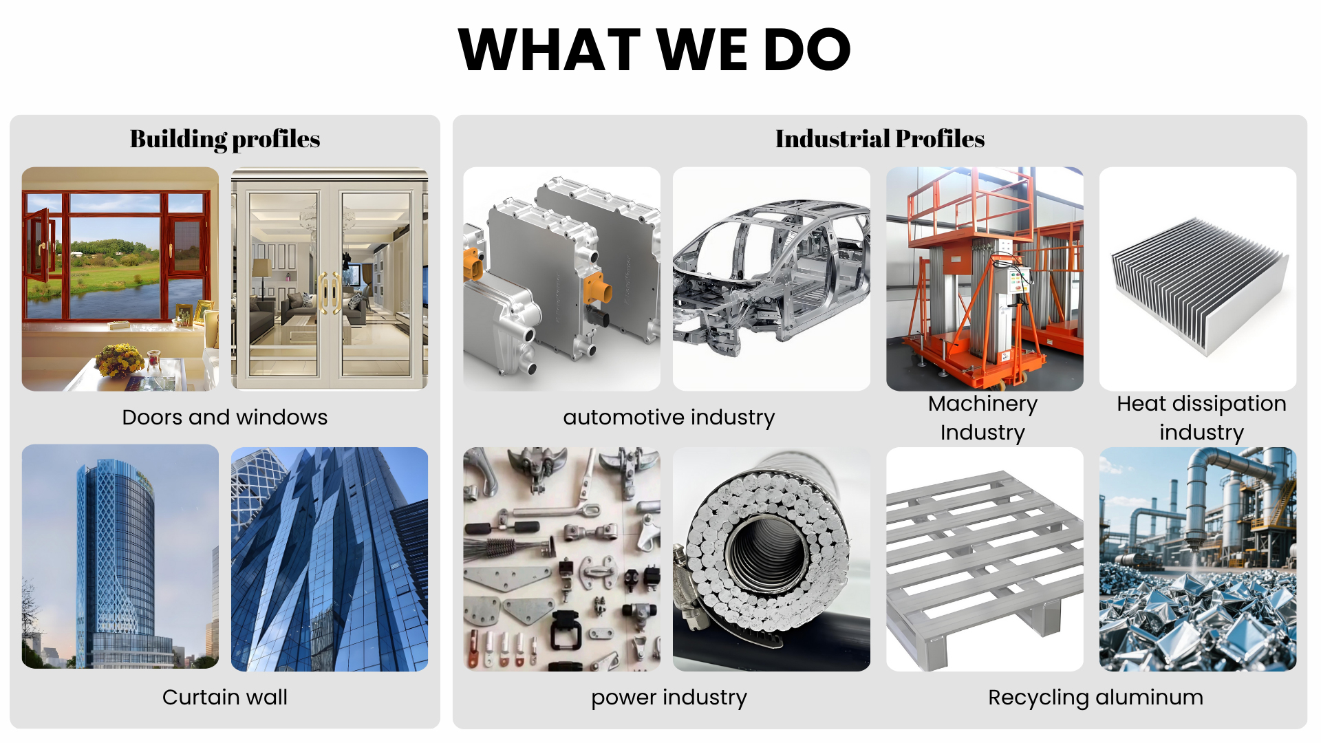 Sản Phẩm chính: Hồ Sơ nhôm, sản phẩm chế biến Sâu Nhôm, cửa sổ và cửa nhôm, ván KHUÔN NHÔM